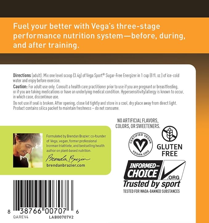 Vega Sport Sugar Free Energizer Lemon Lime 4 8 Oz Tub Amazon