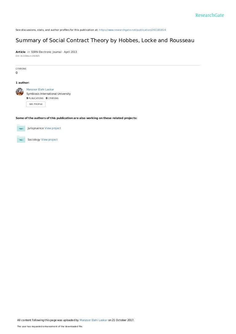 Summary Of Social Contract Theory By Hobbes Locke And Rousseau